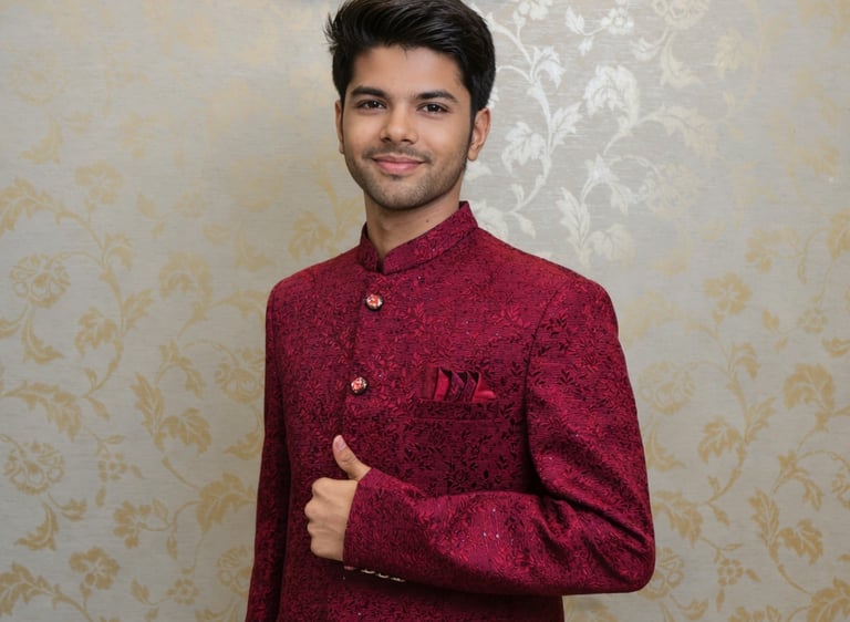 Luxurious Jodhpuri Suit tailored to bring out the royal groom in you.